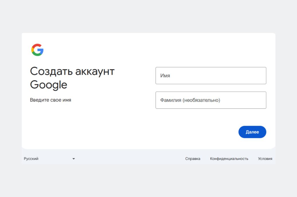 - Введите имя и фамилию (не абракадабру, Google проверяет фейковые имена).
