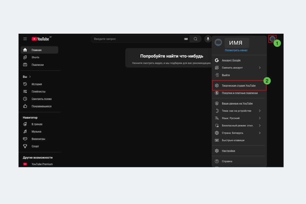 - Откройте https://youtube.com под созданным Google-аккаунтом.